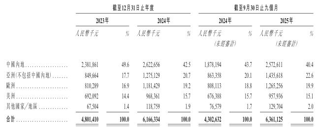 海外市场扩张也成为业绩增长的重要驱动力。招股书显示,绿联科技来自中国内地以外地区的收入由2023年的24.20亿元增加46.5%至2024年的35.44亿元,并从2024年前三季度的24.24亿元增加56.3%至2025年前三季度的37.8亿元。2025年前三季度,绿联科技来自海外市场的收入占比高达59.6%。